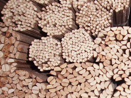 | Sie fragen sich, für was diese Stäbe gut sind: Die gewickelten Läufer oder Rotoren eines elektrischen Motors weisen Nuten auf. Um ein Abwickeln des Kupferdrahts durch die Fliehkraft zu verhindern und auch im stehenden Zustand einen gewissen Druck auf die Wicklung auszuüben, werden diese Nuten durch Verschlussstäbe oder -keile aus Holz geschlossen.